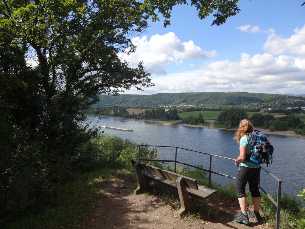 wieder einen wunderschönen Ausblick auf den Rhein und den Kaltwassergeysir auf dem gegenüberliegenden Namedyer Werth bei Andernach hat. Kurz hinter Leutesdorf beginnt für uns der heutige Abstieg über