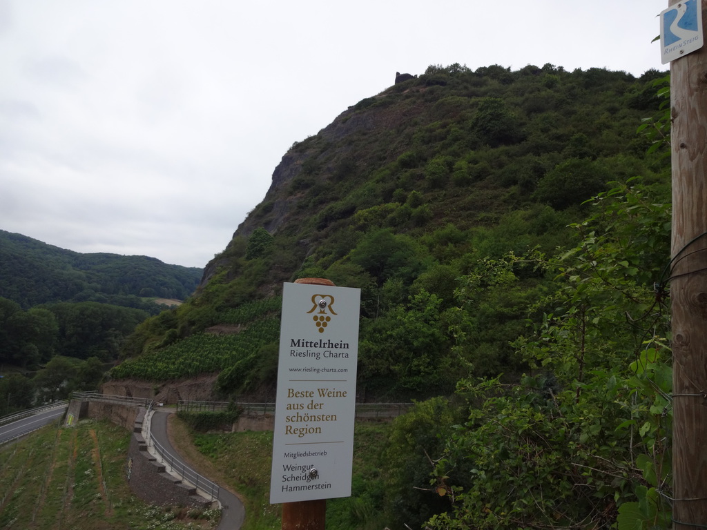 Weinberg hindurch Richtung Ober-Hammerstein. Dort beginnt der Aufstieg zur Ruine Hammerstein. Die ehemalige Burg auf dem 196 Meter hohen Felskegel liegt zwar nicht direkt am Rheinsteig, aber der