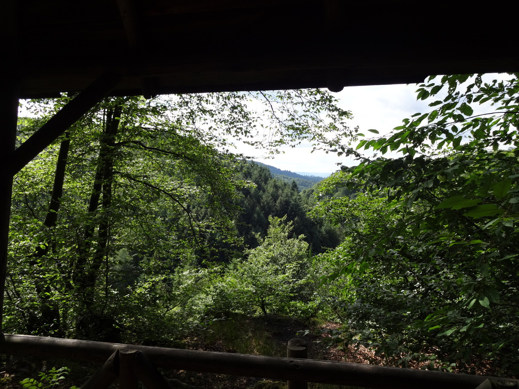 schmalem Weg nach rechts verlassen. Eine imposante Aussichtsplattform, welche von den Landesforsten Rheinland-Pfalz errichtet wurde, bietet einen beeindruckenden Blick hinunter ind Tal und auf