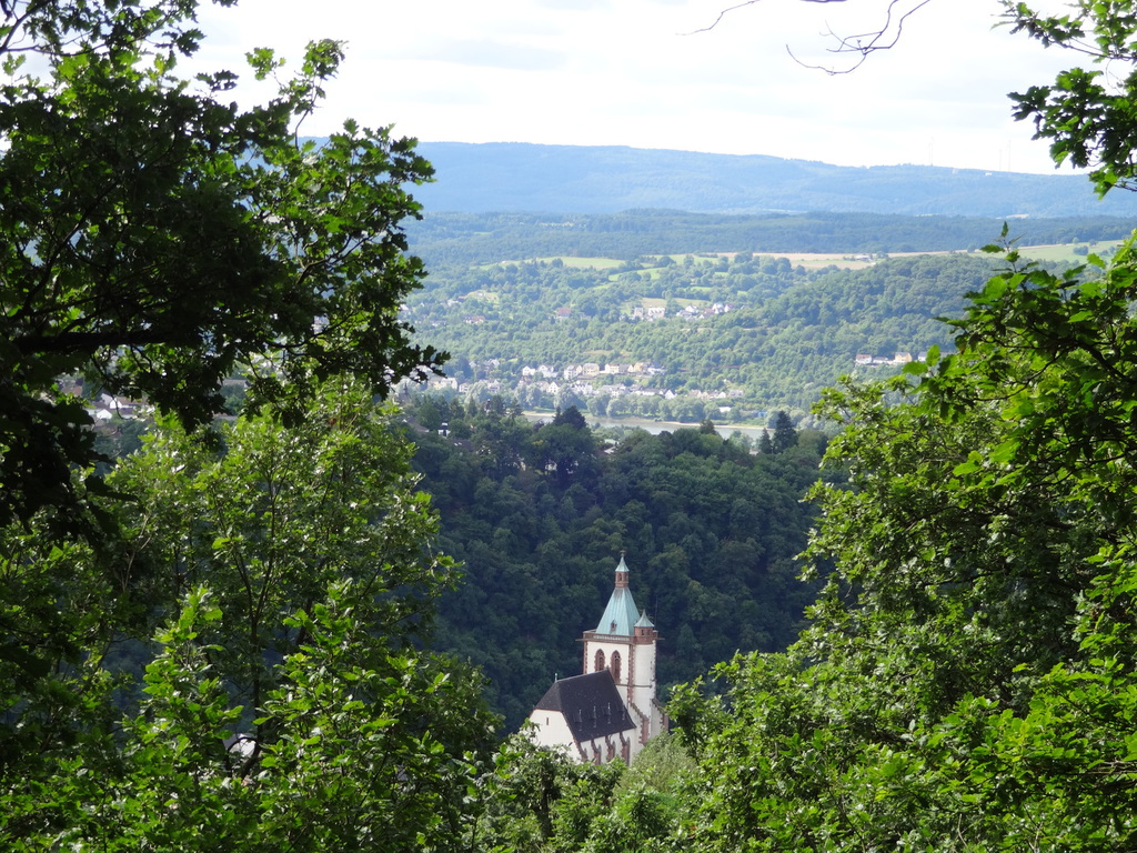 wandern wir im Hang zwischen Gärten an der Theologischen Fakultät vorbei zum Eingang des Klostergartens. Am 1143 gegründeten Kloster Schönstatt wenden wir uns nach rechts in Richtung Wambachtal. Der