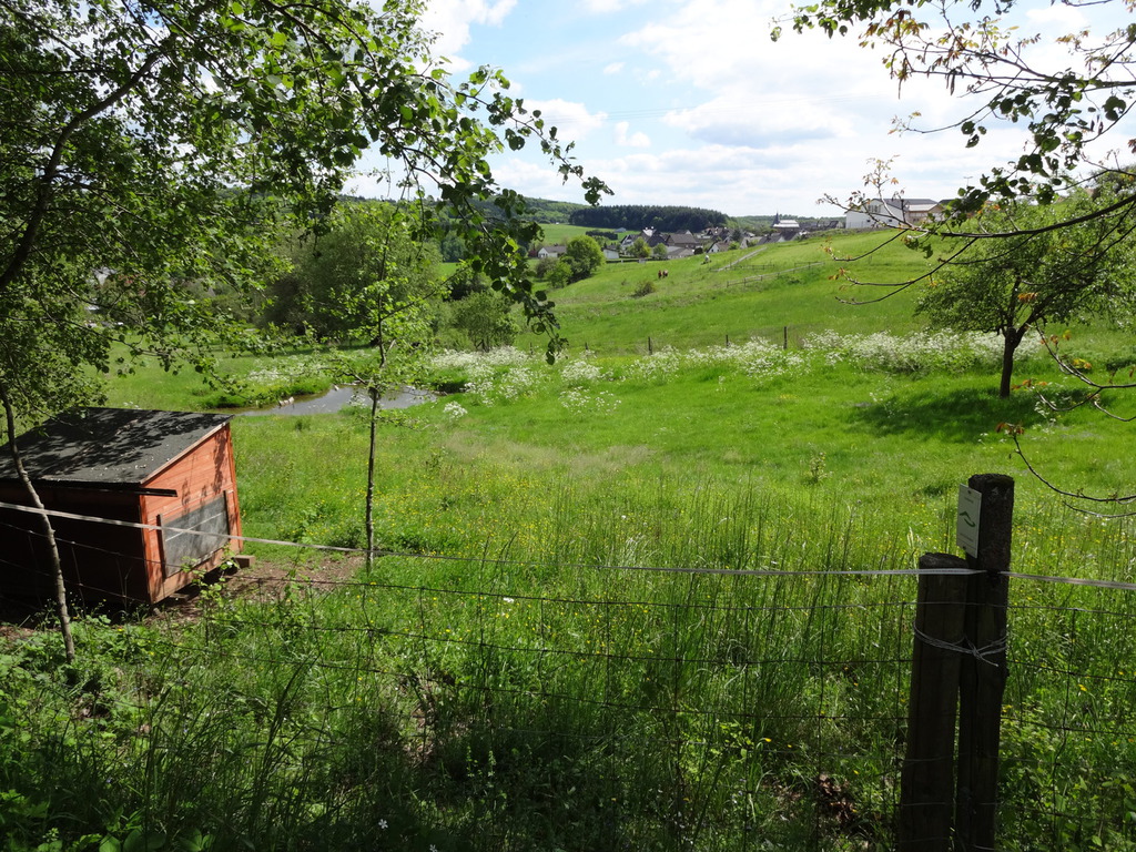 erwähnt.Dann geht es über den Anger zum Unterdorf und von dort auf einem Feldweg auf der Höhe in Richtung Mühltal.Bei der Zigeunerquelle stößt der Weg auf das Mühltal. Eine kleine Holzbrücke über die